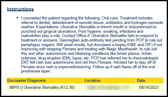 She thought I might have trench mouth??? She never said that to my face. She never suggested debridement or poor oral hygiene to me. Malnutrition – no way! Smoking – never ! If she had asked me any questions, I would have told her I have impeccable oral hygiene. I’ve had one cavity in my life and my dentist praises my healthy teeth and gums on every visit. I can’t believe this went into my permanent medical record without it ever being mentioned to me.