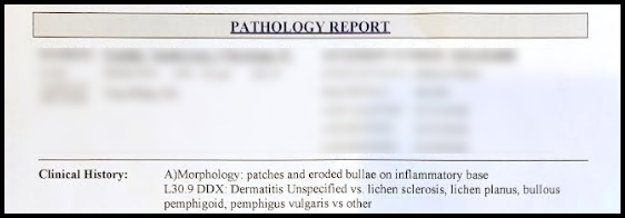 As you’ve probably guessed, my symptoms did not resolve and I returned to dermatology in January of 2024. I personally requested the biopsies to rule out pemphigus. I still thought it might be a possibility.